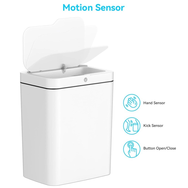 Silent & Smooth Lid Action: Unlike traditional bins that slam shut, this motion sensor garbage can uses a soft-close system that ensures the lid opens and closes quietly, without disturbing your home environment. Whether used in a bedroom, bathroom, or office, you won’t hear unnecessary noise. The intelligent sensor ensures the lid closes automatically after 5 seconds, saving battery power while maintaining cleanliness. Its smooth operation adds comfort to every use