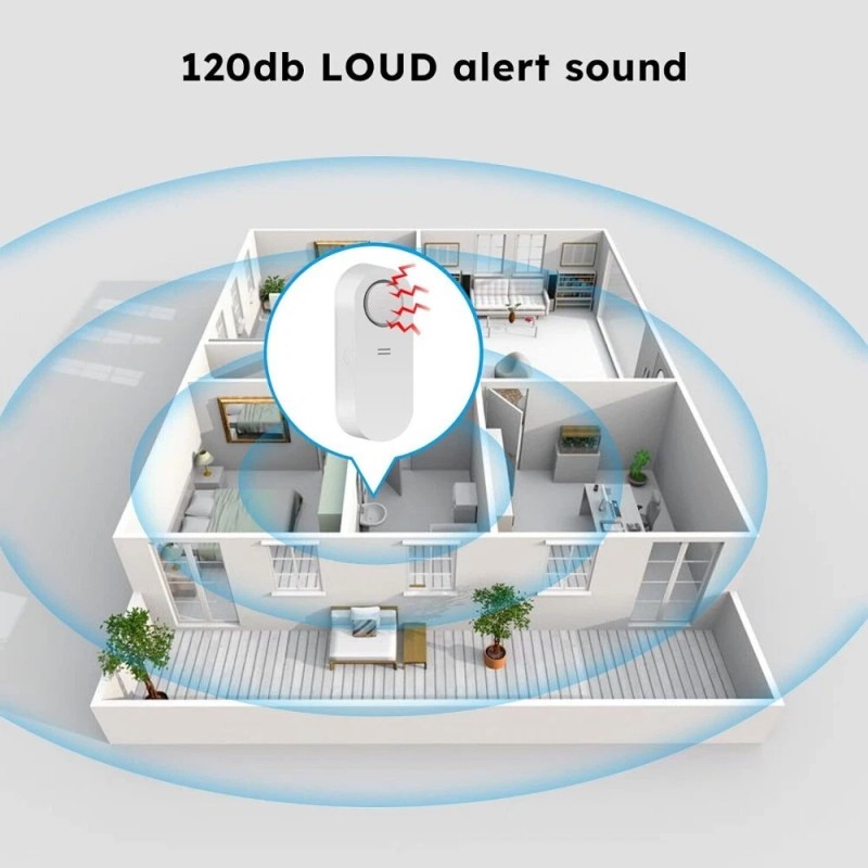 - [Loud Alarm Audio]: 120db water leak alarm loud enough to be heard even if the leak happens in garage,garret or basement etc.