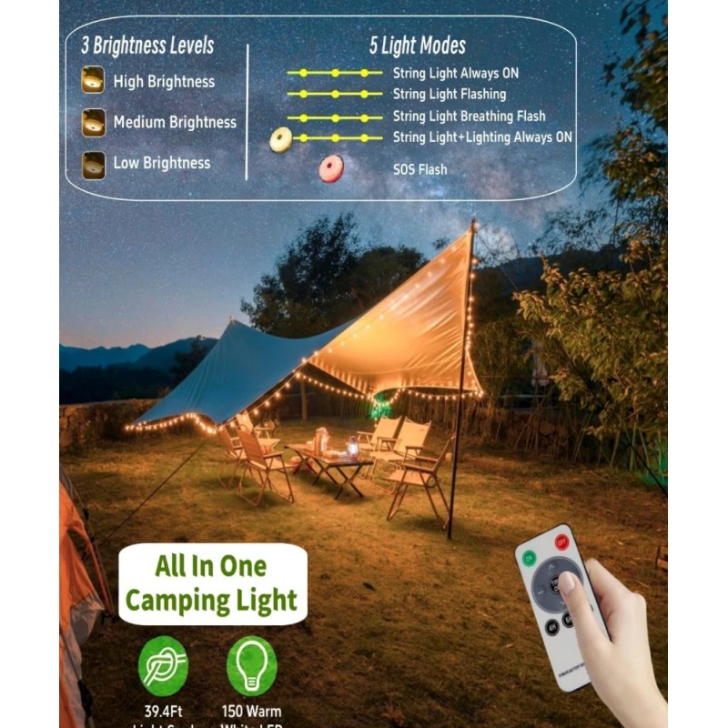 - 【Adjustable Brightness & 5 Lighting Modes】- Customize your lighting with 3 brightness levels and choose from 5 versatile modes: Constant On, Flash, Breathing Flash, SOS Flash, and a combo of String Light + Lamp Light.