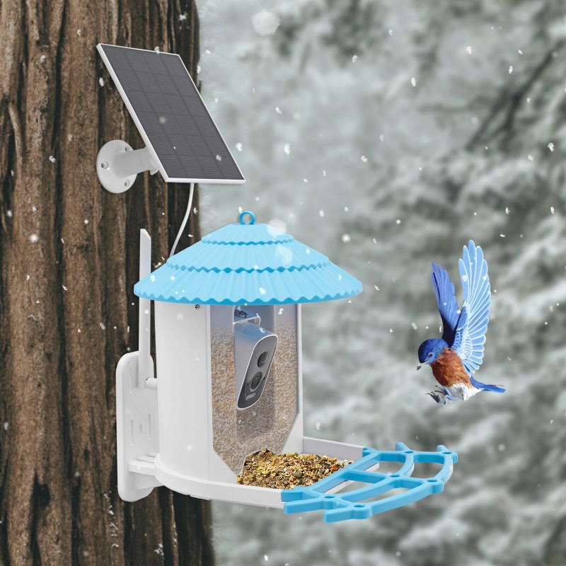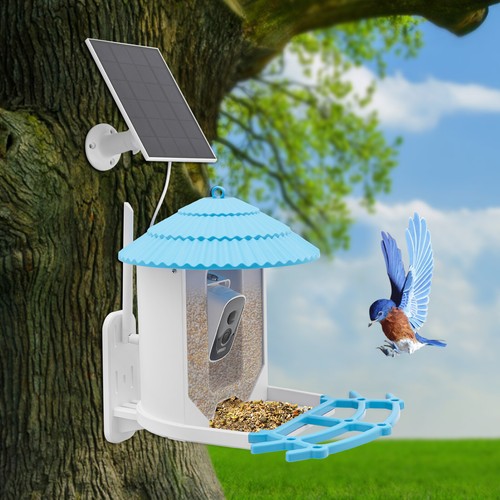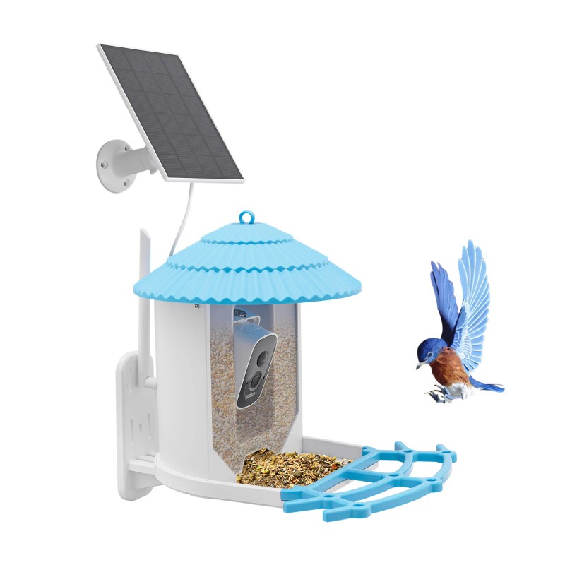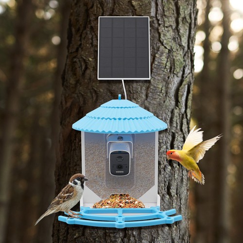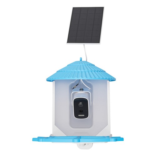 Unbranded Solar Powered Bird Feeder W/ 4MP Camera Ai Smart Blue Bird Feeder With Live View