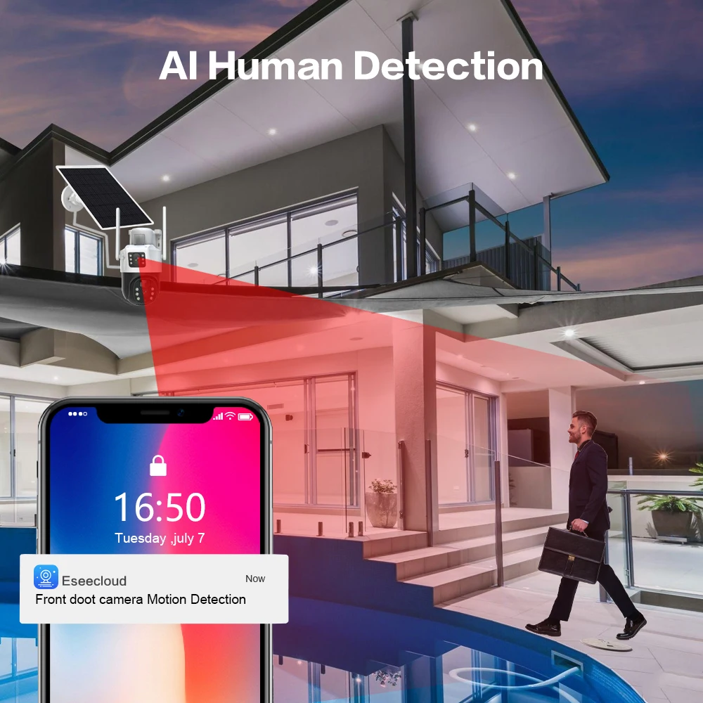 4.PIR Motion Sensor & Instant Alerts: The solar outdoor camera has a sensitive PIR motion sensor. Once motion is detected, it will be activated in 0.2 seconds, steadily record all human movements and send notifications to your smartphone (Android or iPhone)