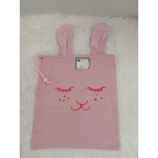 Unbranded Spring/Easter Pink Cloth Gift Bag W/Bunny Face & Gingham Ears W/Drawstring BNWT!