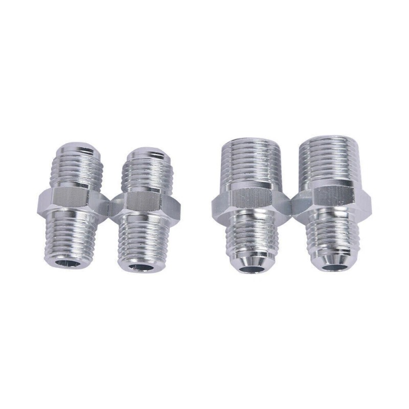 - (2) 1/4” NPS to -6AN transmission fittings;