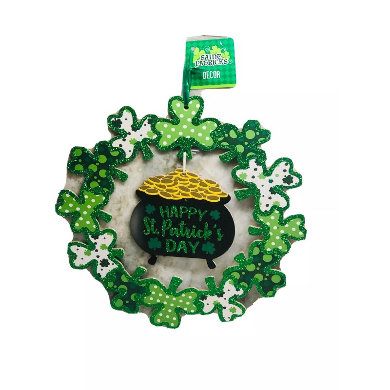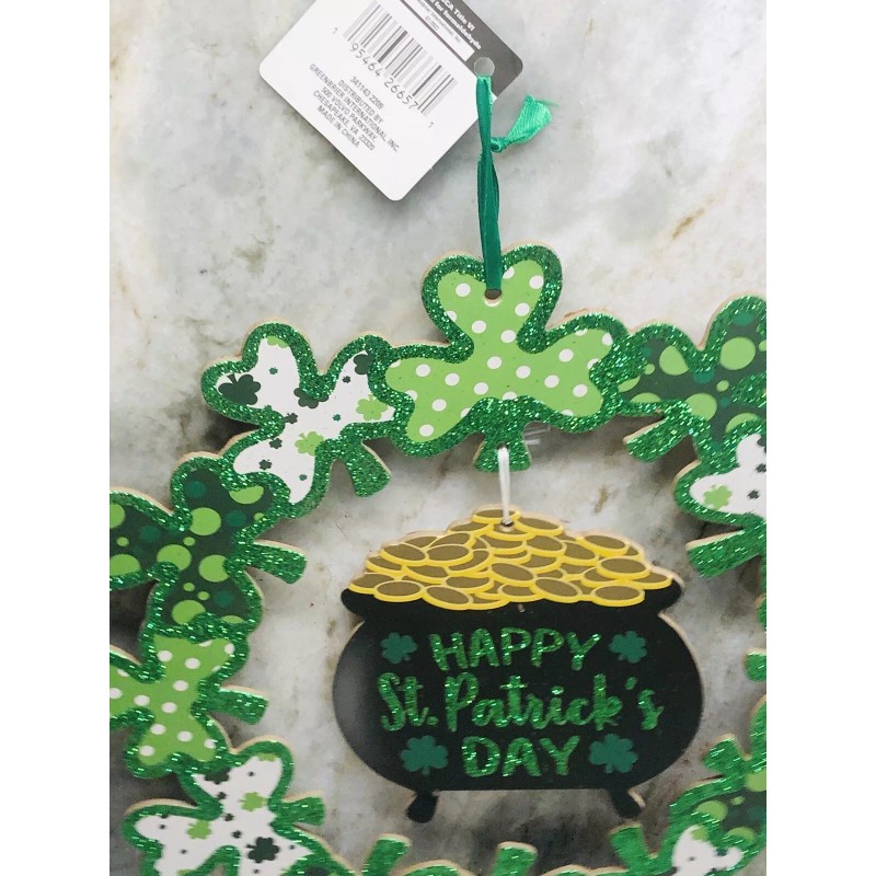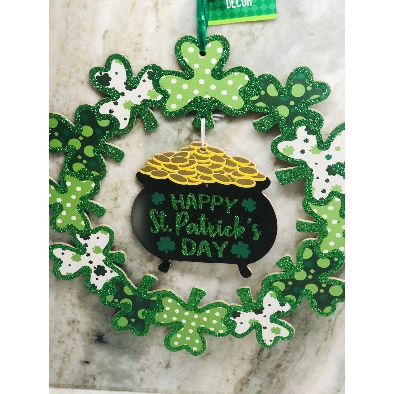 Unbranded St Patrick's Day Green Wreath Shamrocks Hanging Sign Irish Wall Decor NEW-11”