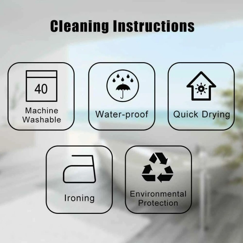 This cloth shower curtain is easy to clean and maintain, machine washable to get it fresh.A quick and luxurious way to refresh and change the appearance of a bathroom, bedroom, restroom, master bathroom, children's bathroom, dorm room, guest suite, hotel Bath and any other use you may imagine.Adds real value and depth to your home.