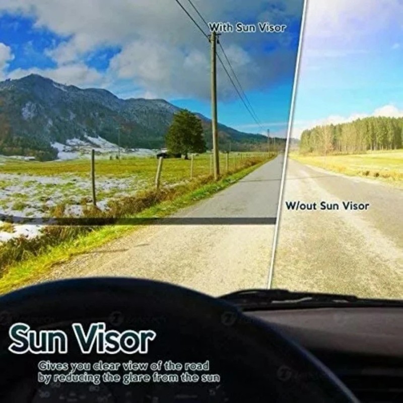 1.EYES COMFORT - HD car visor avoids sun glare stabbed shot to ease eyestrain. This is ideal for people who are more susceptible to glare. The visor relieves eye fatigue and effectively protects the safety of driving under the strong light. The car visor filters the armful light; reducing light caused by eye diseases and protects the visual health.