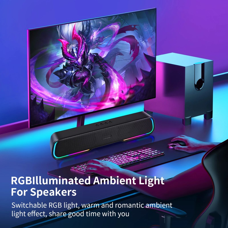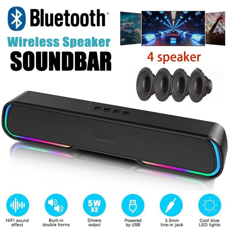 【2 Connection Methods】Our pc speakers support 2 connection methods which are Bluetooth and AUX wired connection, connects effortlessly with your preferred device. 3.5mm audio cable for connecting to TV, suitable for various devices such as TV, PC, laptop and smart phone. Wireless pairing version 5.0 can ensure fast pairing, and compatibility with various devices. This sound bar has 10m wireless pairing support for seamless streaming.
