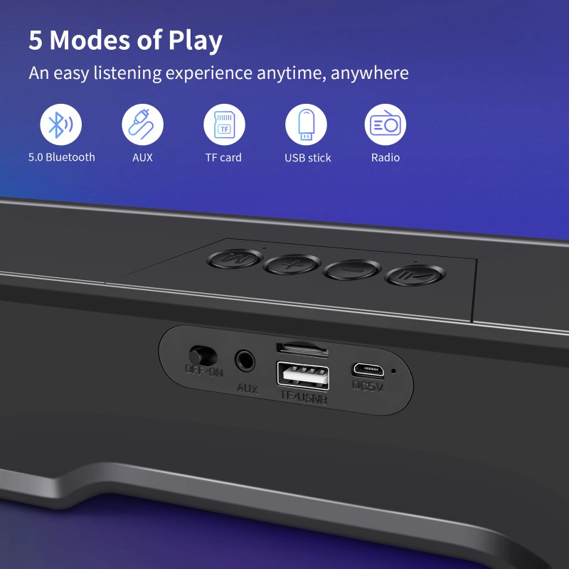 【Multiple playback modes】1) Wireless pairing; (2) ; (3) TF card; (4)TV; (5)USB Flash Drive
