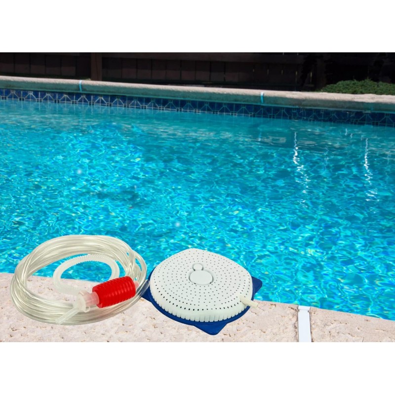 This simple device economically pumps the water off your above ground cover without electricity. Just place the drain on top of your pool cover and squeeze the siphon pump until water begins to flow. The drain will automatically stop when the cover is drained.