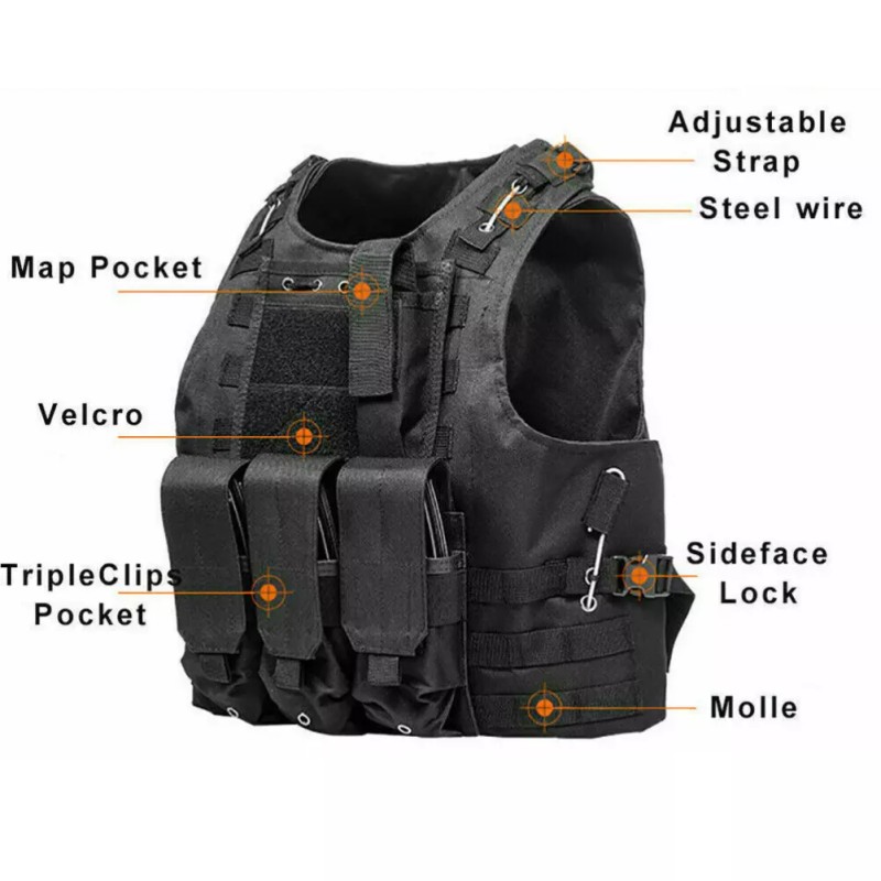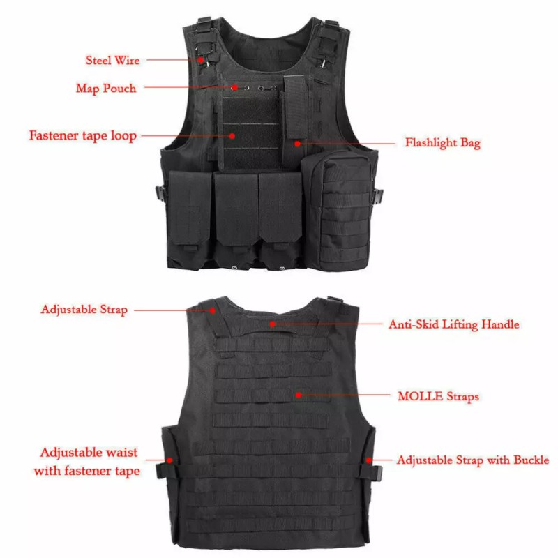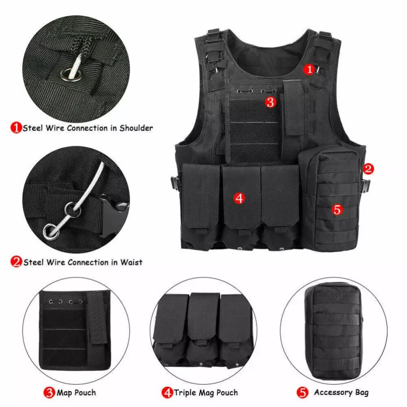 -Shoulder and waist side adopt ribbon and buckle design that allows you to wear and take off this tactical vest quickly and conveniently.