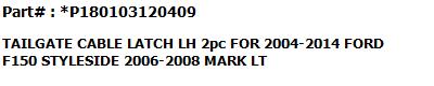 FOR 2004-2014 FORD F150 STYLESIDE / 2006-2008 LINCOLN MARK LT TAILGATE CABLE (with screws) LH=DRIVER SIDE