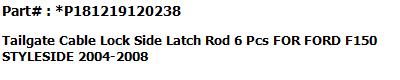 This is a Brand New replacement parts for For FORD F-150 STYLESIDE 2004-2008 / LINCOLN MARK LT 2006-2008