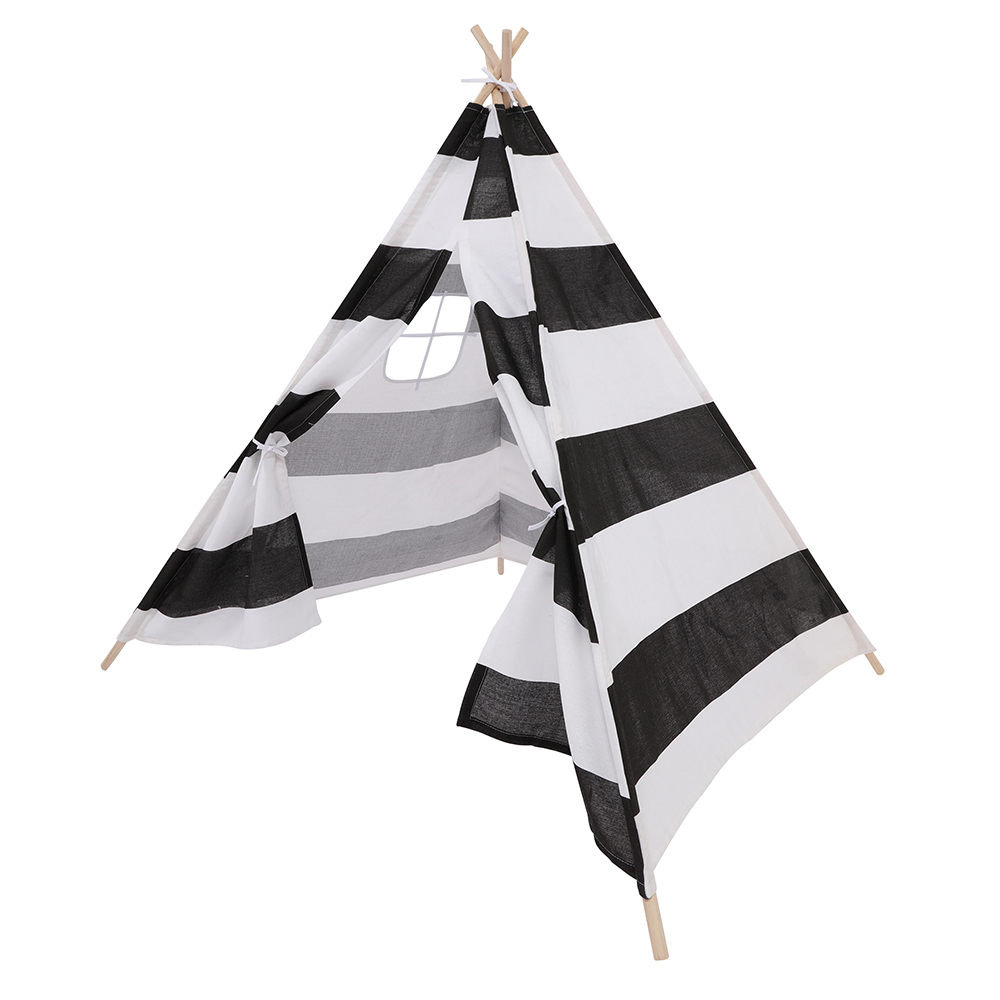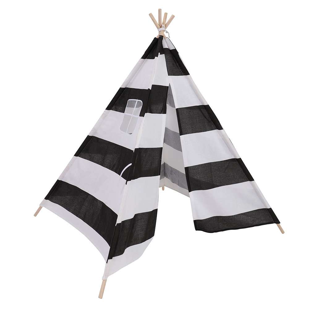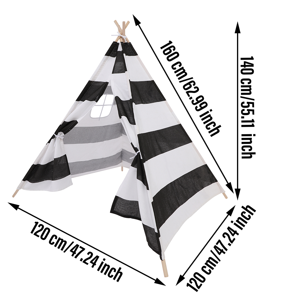 we created an easy- to-assemble lightweight kids play tent . Standing 55 inch tall and 47.2 inches long by 47.2 inches wide, this kids teepee can be made wider or smaller by moving the wood poles closer together or fully apart. Fits into any space and nicely into corners. Ideal for small rooms. Disassemble and slip parts into the carrying bag. Both portable and practical, you can carry your child’s favorite teepee anywhere with you!