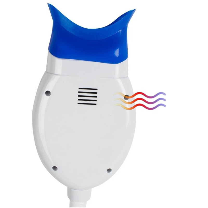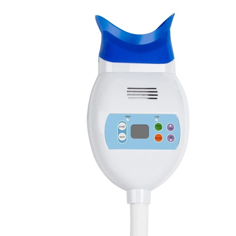 Teeth Whitening Unit is a new type whitening technology,based on the condition of strong blue LED light and whitening kit accelerant.By the character of nanometer pellet on the surface and light decomposition,activate the most H2O2 in short order on low or normal temperature.Produce mass oxygen atomy permeate teeth and decompose color molecule,to meet the effct of teeth whitening.