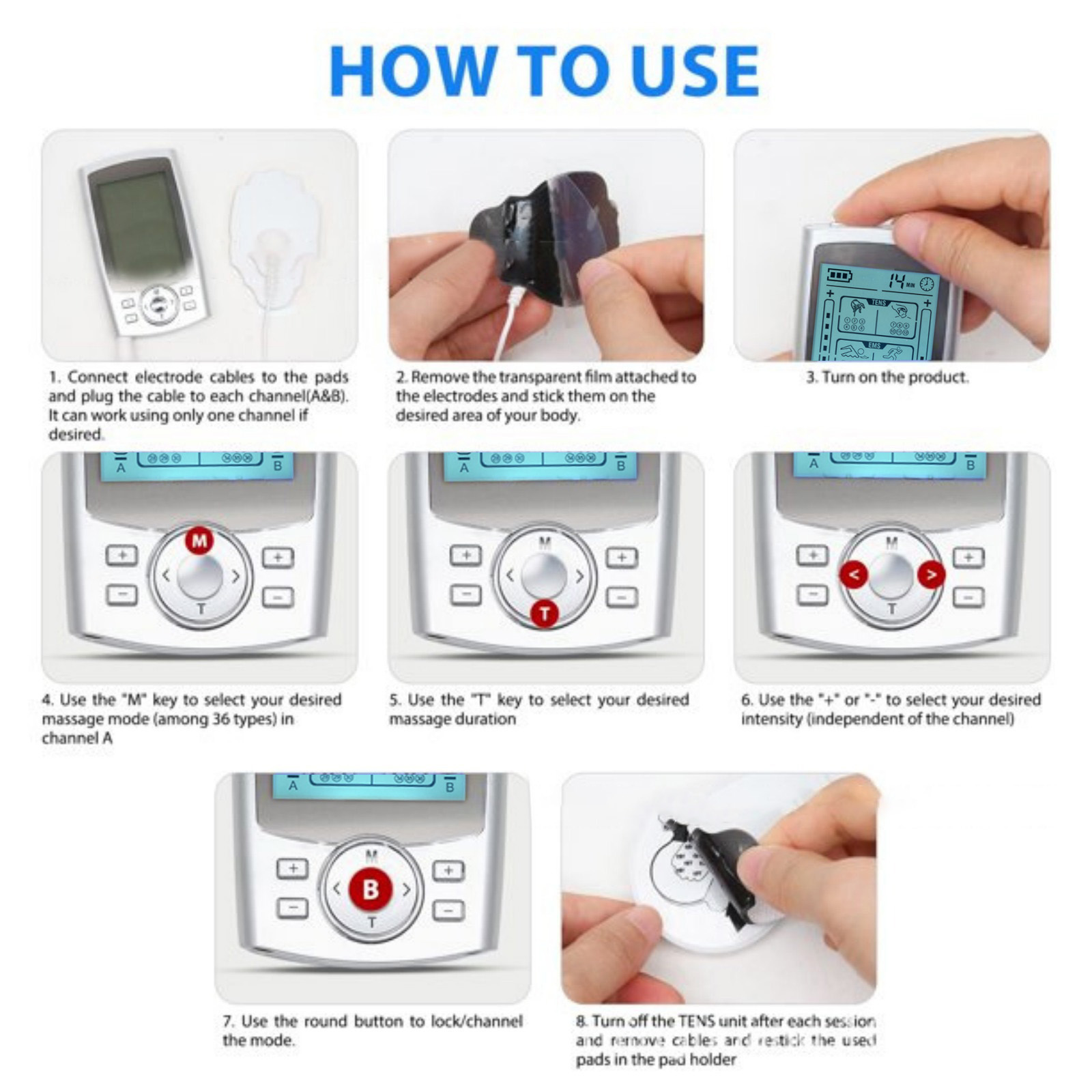 1. Independent Dual Channel Tens Machine: You Can Set Separate Modes And Intensities For Channel A And Channel B. Use For Back, Knee, Shoulder, Ankles, Wrist, Elbow And Make This The Most Powerful Tool For Your Body Relaxation. Enjoy With Your Family And Friends Anytime, Anywhere.