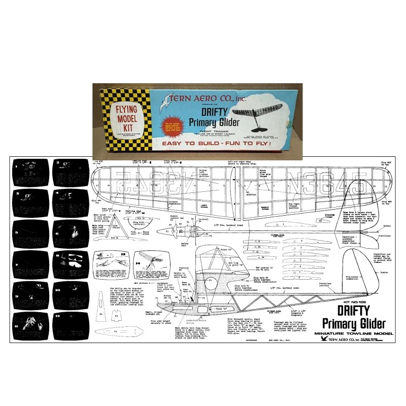 Unbranded Tern Model Airplane Plans (FF): Drifty Primary Glider 18" Span Rubb...