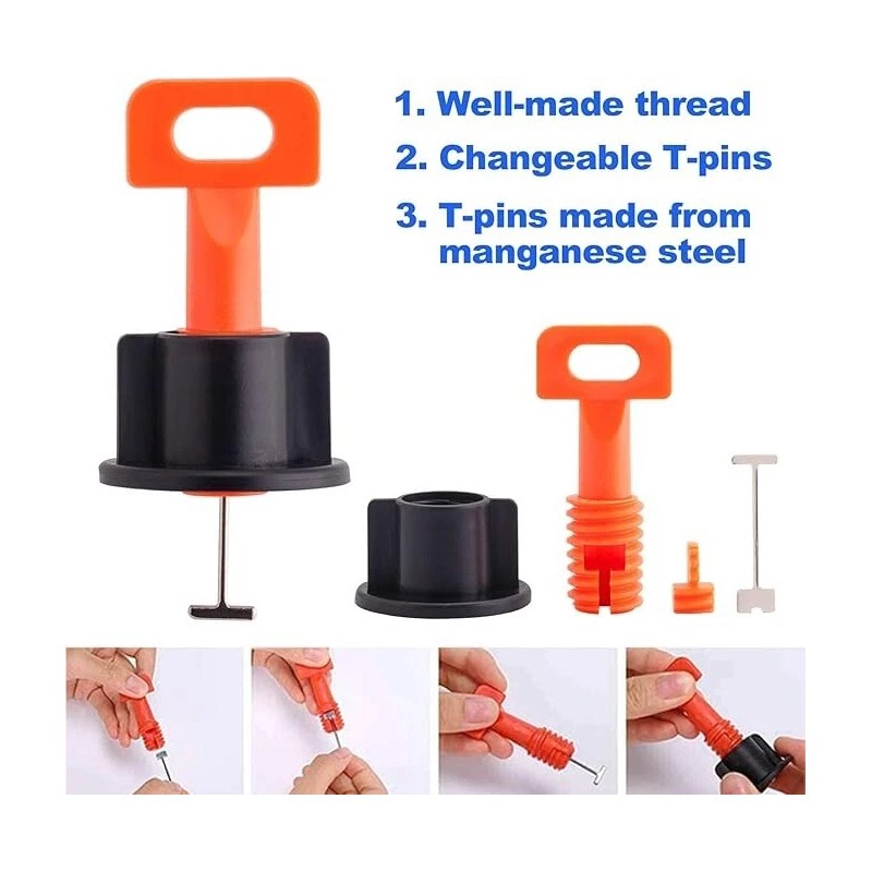 - The updated tile leveling system as the T-needles are changeable. And the T-needles are made of manganese steel, with a better hardness than 304 steel.