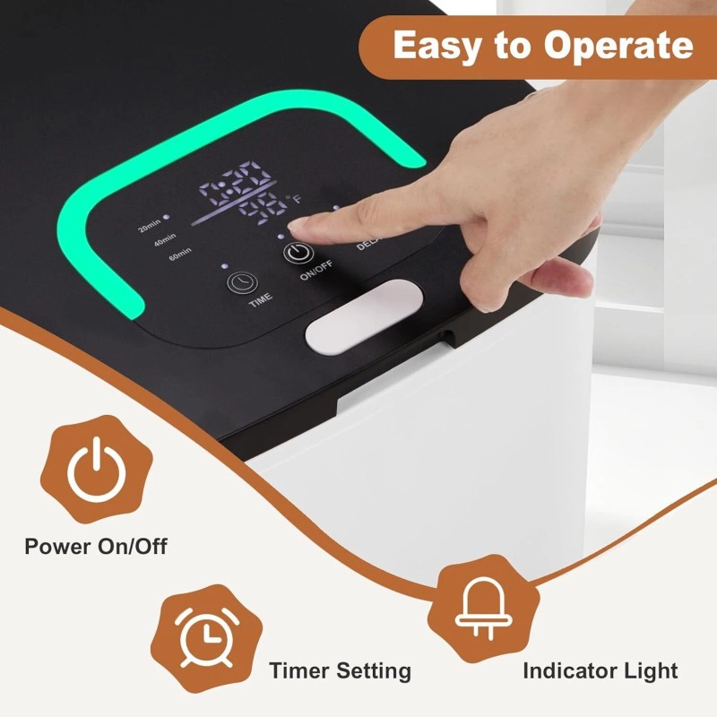 - Easy to Operate: There is an easy-to-control power on/off button on the top of the towel heating bucket, 3 temperature change indicators (white/green/red) provide extra reminders and safety.Additionally, 20/40/60 min timer settings and 30min - 24H delaying time provide convenience and can be adjusted according to your needs.