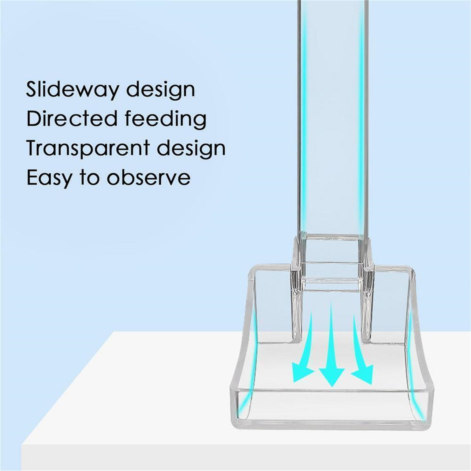 Keep the fishtank clean: The food are all put into the tube and then on the bowl,which be convenient for you to clean the fishtank.