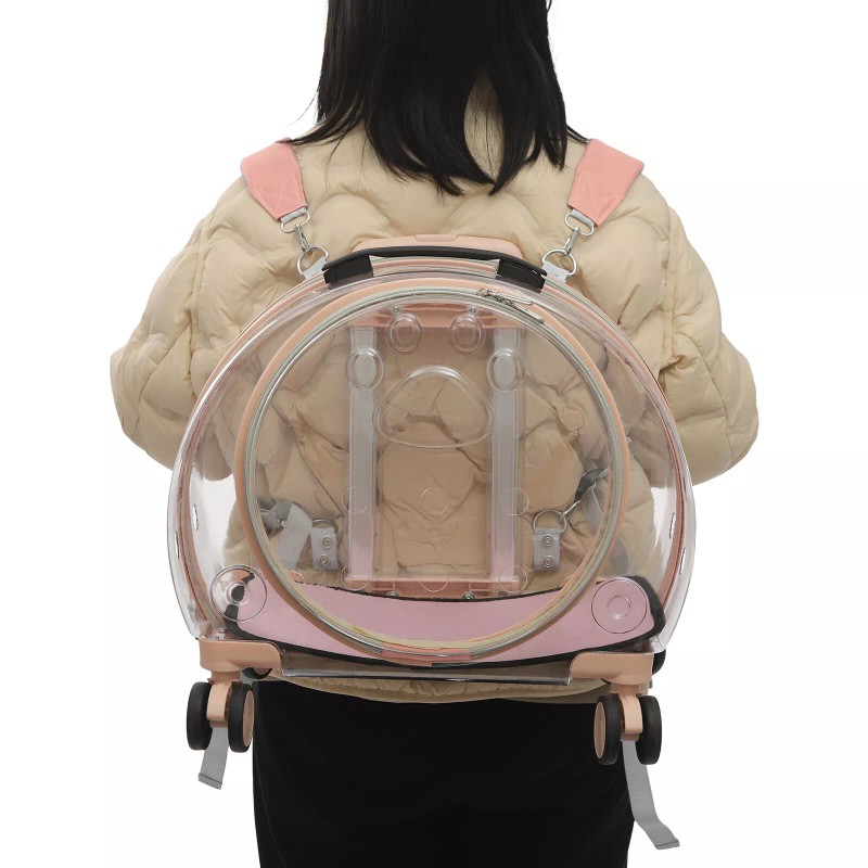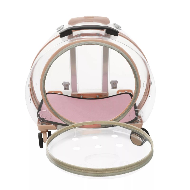 Transparent & Fully Breathable Dog/Cat Carrier with Rolling Wheels for Traveling