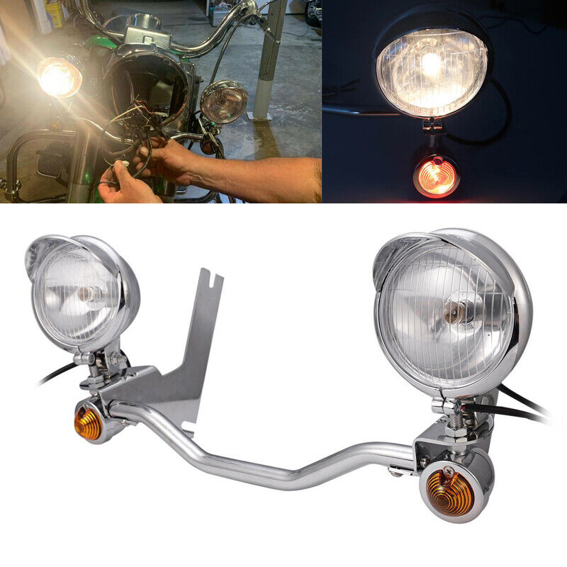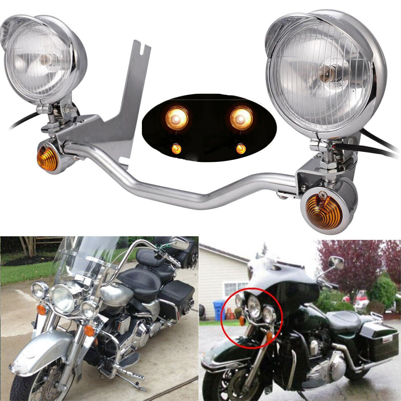 Chrome Motorcycle Driving Passing Turn Signal Spot Light Lamp Bracket Bar