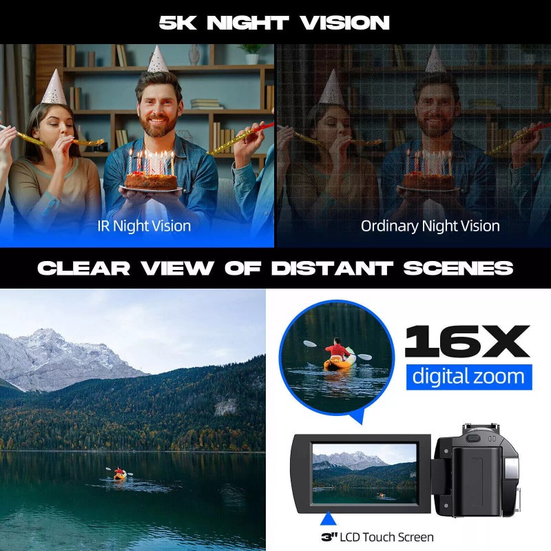 - 【Lens Hood & Stabilizer Holder】-This 5K digital video camera comes with lens hood to block excess light and protect your night vision camcorder lens from accidental damage. Foldable handheld Stabilizer holder keep the video recorder stable when recording. If you have any question with 5K camera, please kindly contact to us,we will reply you within 8 hours.