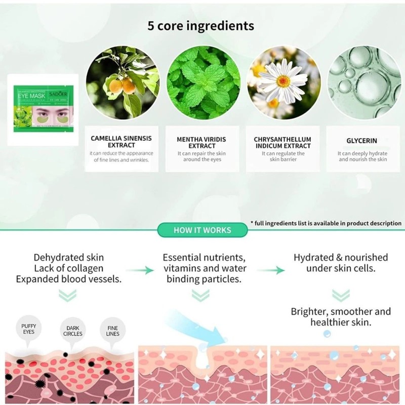 【Safe and Effective Ingredients】 Our eye mask is infused with collagen, seaweed, hyaluronic acid and a variety of natural botanical extracts. It deeply repairs the skin around the eyes, helping to soothe, revitalize and protect the skin with no side effects.
