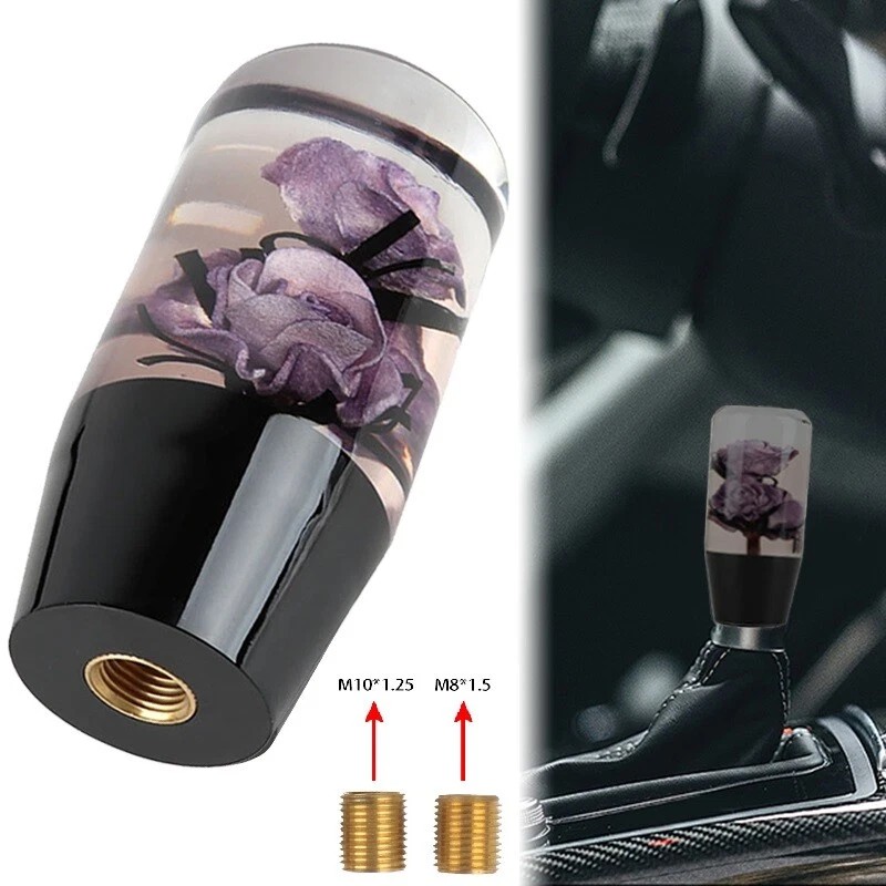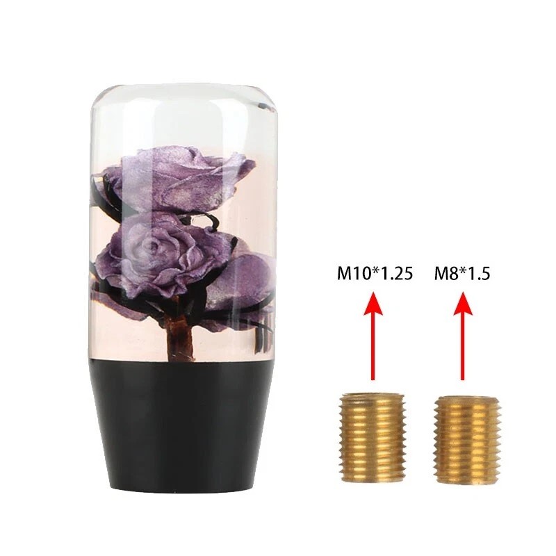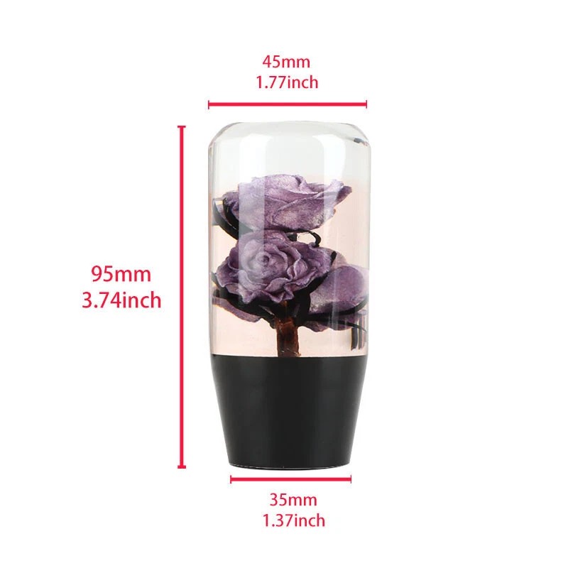 Universal 10cm JDM Clear Purple Real Rose Flowers Manual Gear Stick Shift Knob Fit For All Car Model