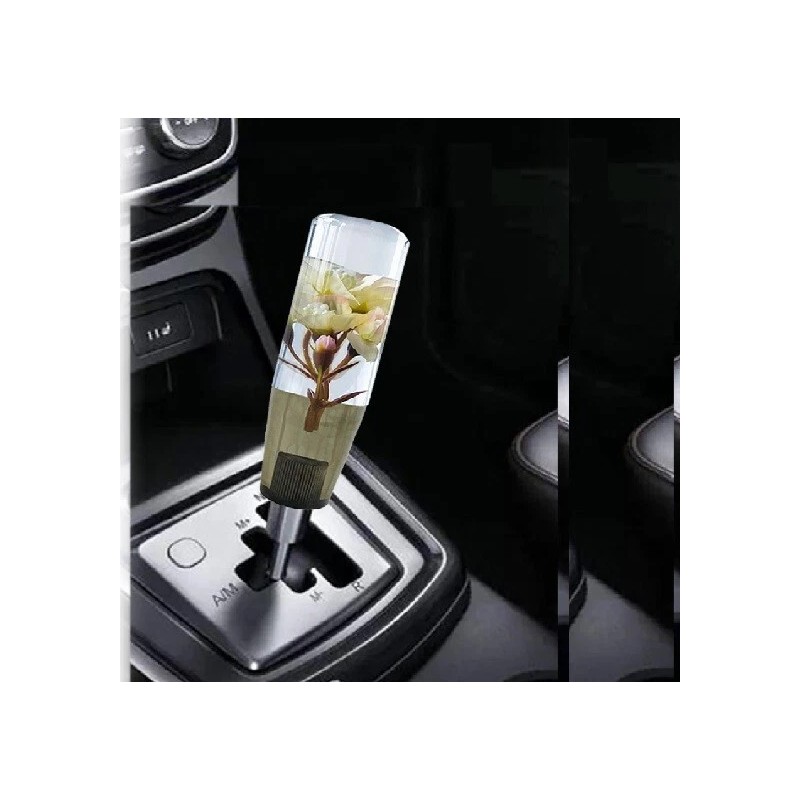 Unbranded Universal 15cm JDM Clear White Real Flowers Manual Gear Stick Shift Knob Shifter
