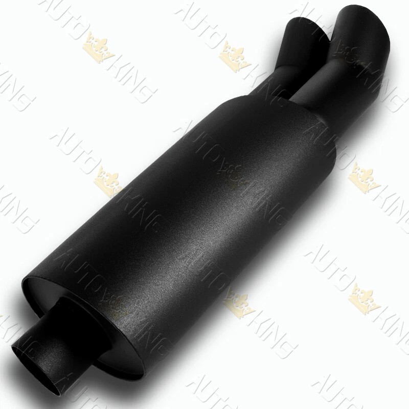 Unbranded UNIVERSAL 3" DUAL ANGLE SLANT TIP T304 BLACK RACING EXHAUST MUFFLER 2.5" INLET