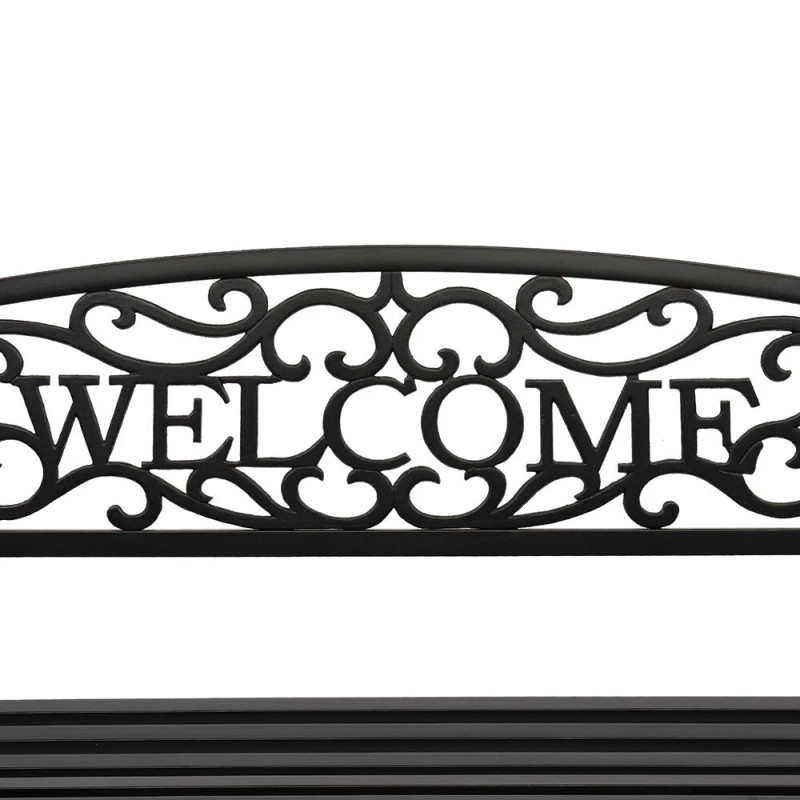 Unbranded US 50" Outdoor "Welcome" Pattern Backrest Cast Iron&PVC Bench Garden Yard Chair