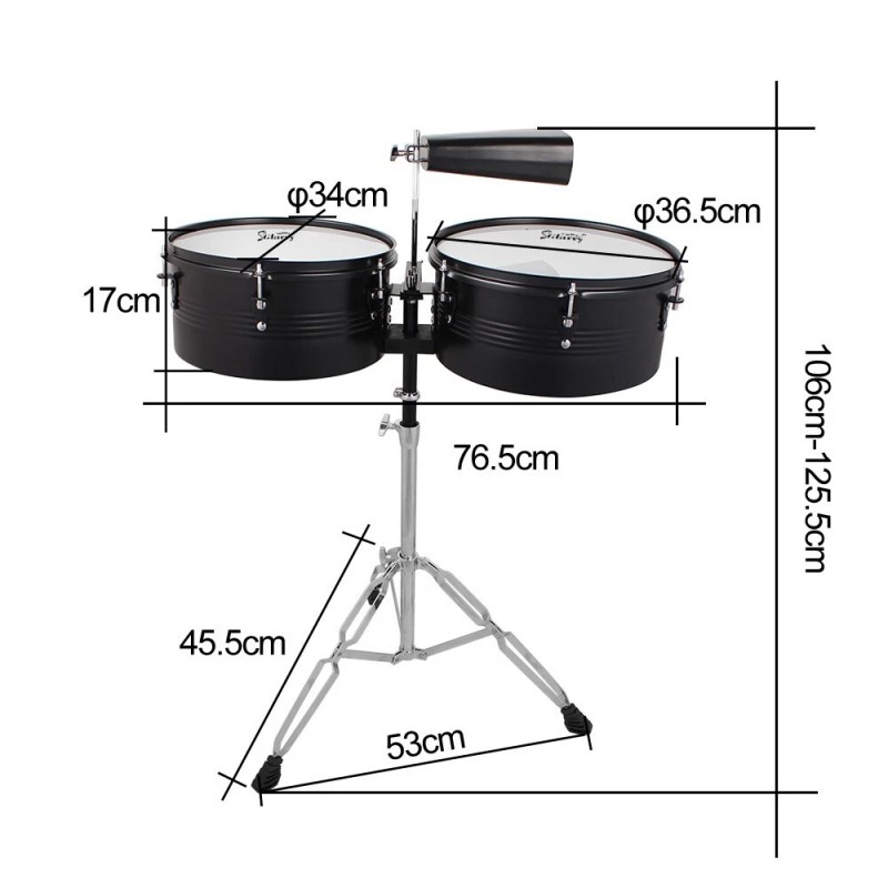 Unbranded US Percussion 13" & 14" Timbales Drum Set w/ Stand &Cowbell Drum Sticks Black
