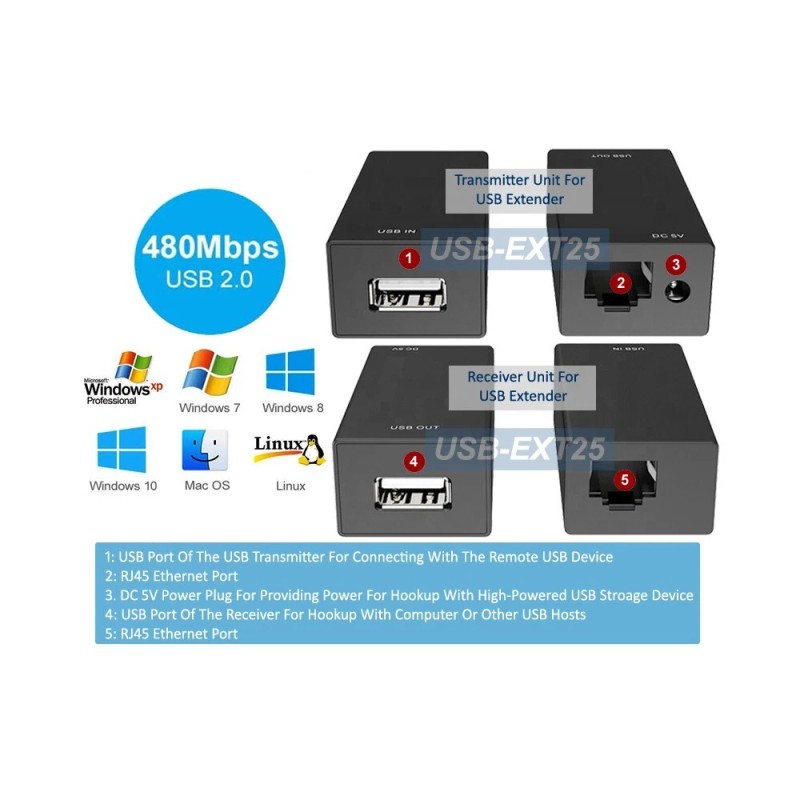 - Built-in repeaters of this USB extender provides maximum stability for connecting the computer with USB data storage or USB video camera over the long distance.