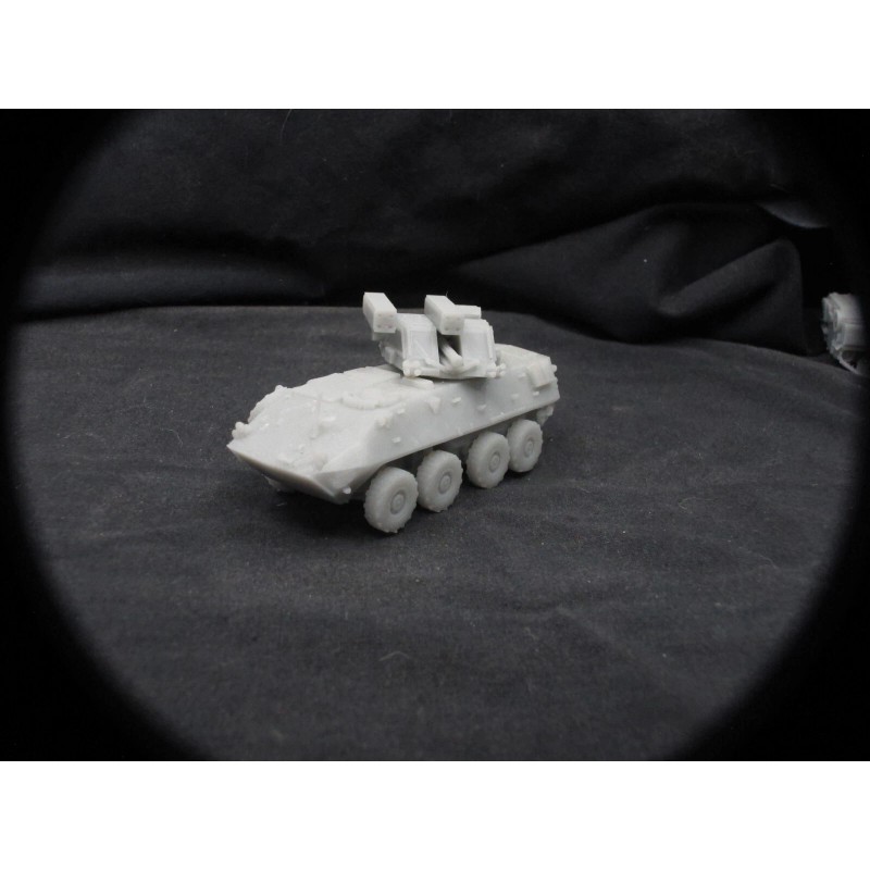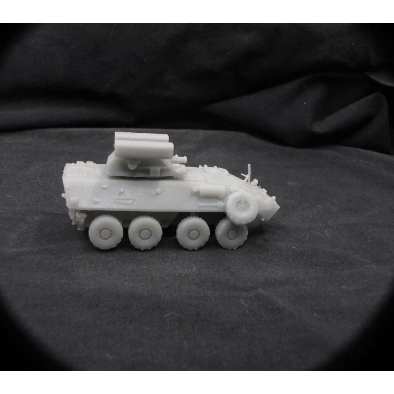USMC LAV Air Defense vehicle with GAU-12 25mm gatling gun and 8 Stinger missiles. Adopted by the Marines in limited numbers in the early 90s. Available with gun and missiles level or slightly elevated, ships with gun and missiles elevated. If you'd like some turrets with the gun and missile launchers level, please contact me.