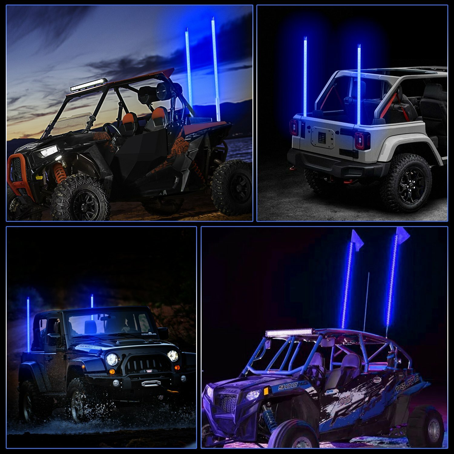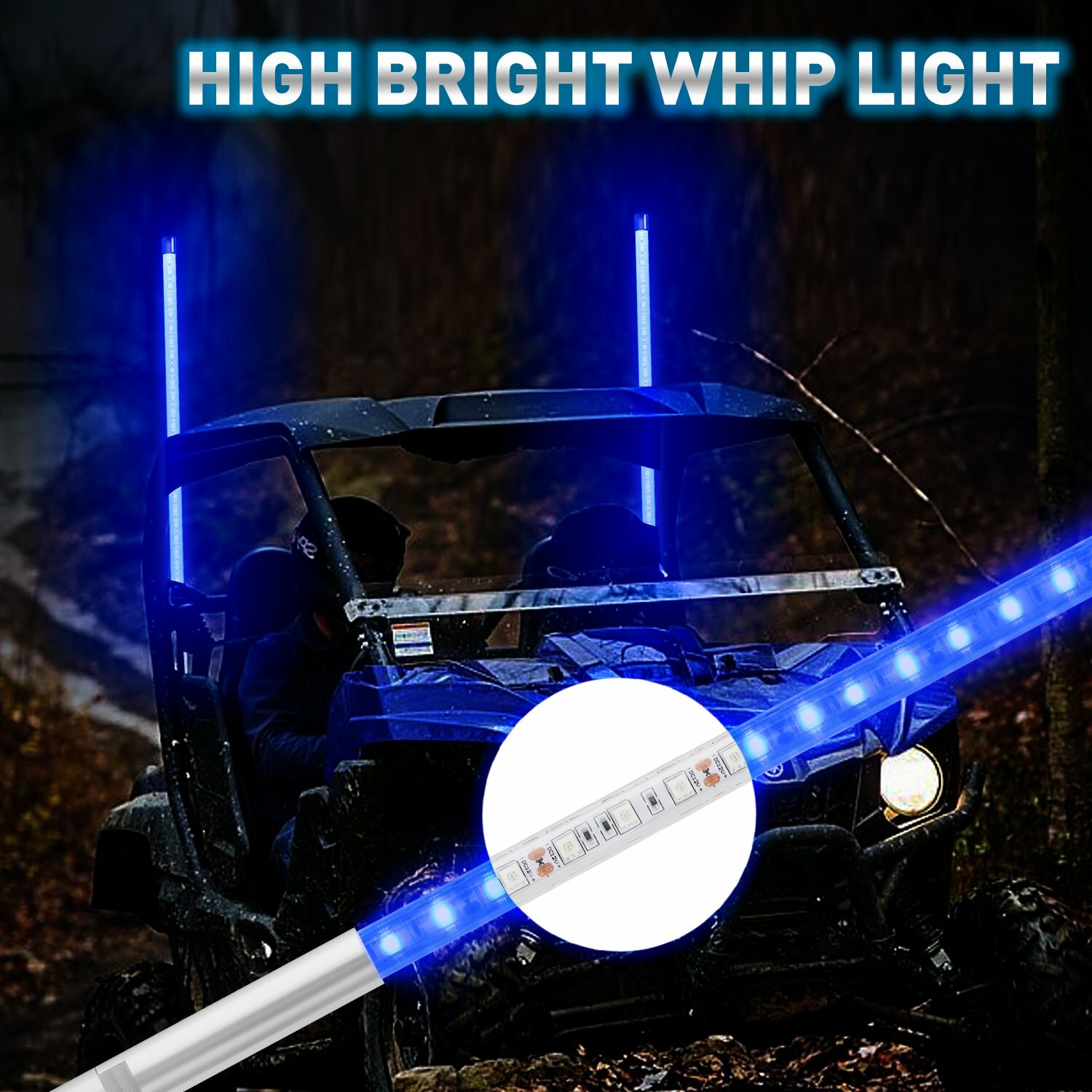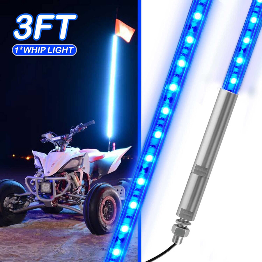 UTV 3ft LED Whip Light Flag Antenna Blue Lighted Bars for Polaris RZR Can Am