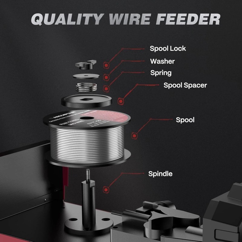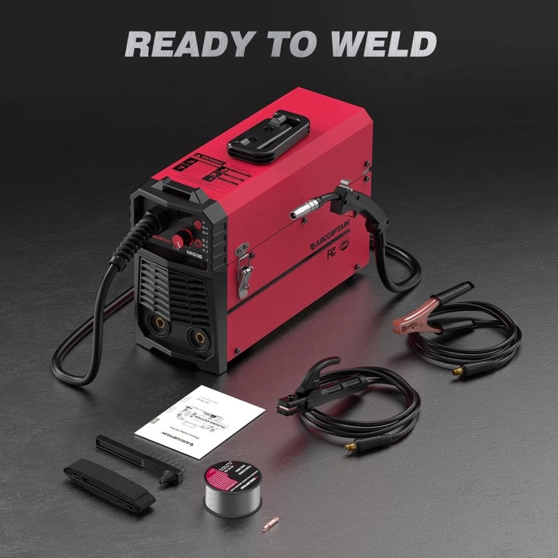 - Comprehensive Package: Comes with 1 Welder, 1 MIG Torch, 1 Ground Clamp, 1 Electronic Holder, 1 .030"/2lb Flux Cored Wire, and more.
