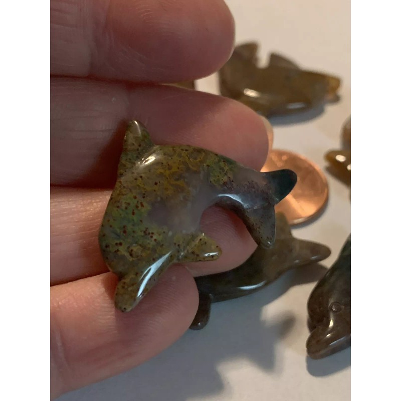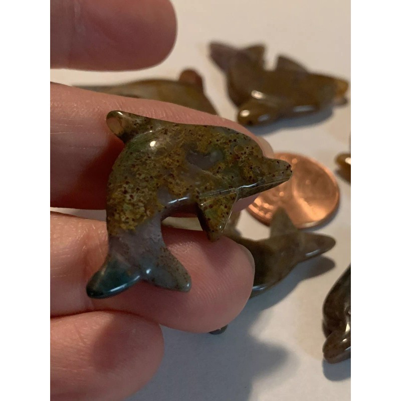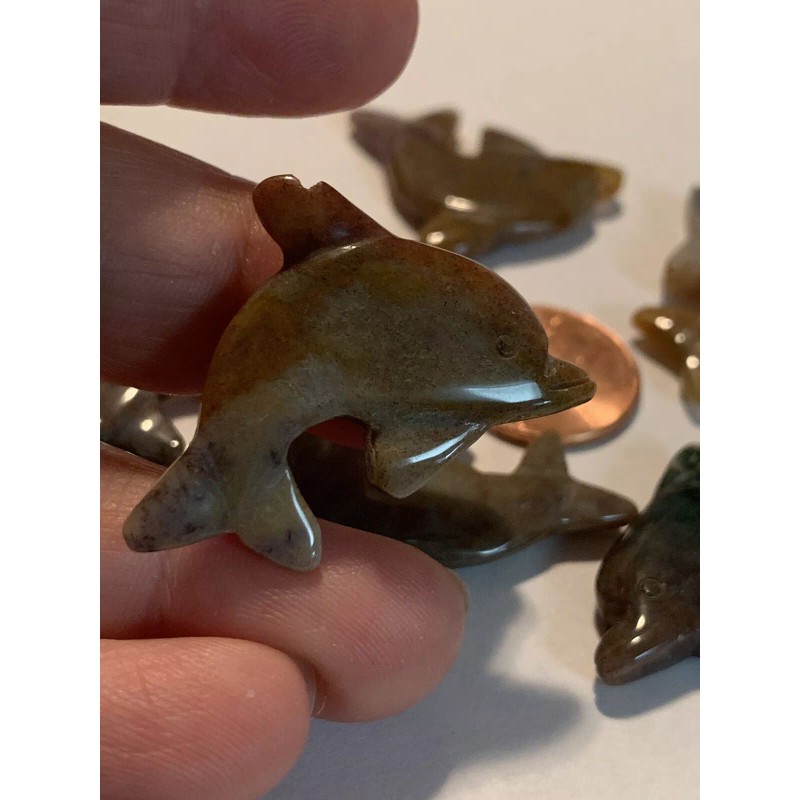 Unbranded Vintage Chinese Carved Agate Jumping Dolphin Bead Multi-Color 32mm x 25mm Approx