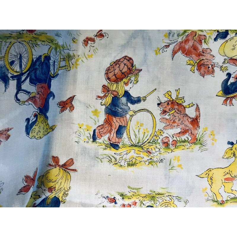 Unbranded VTG `70-80`s Children`s Novelty Print Children at Play w/Pets Butterflies BTFQ