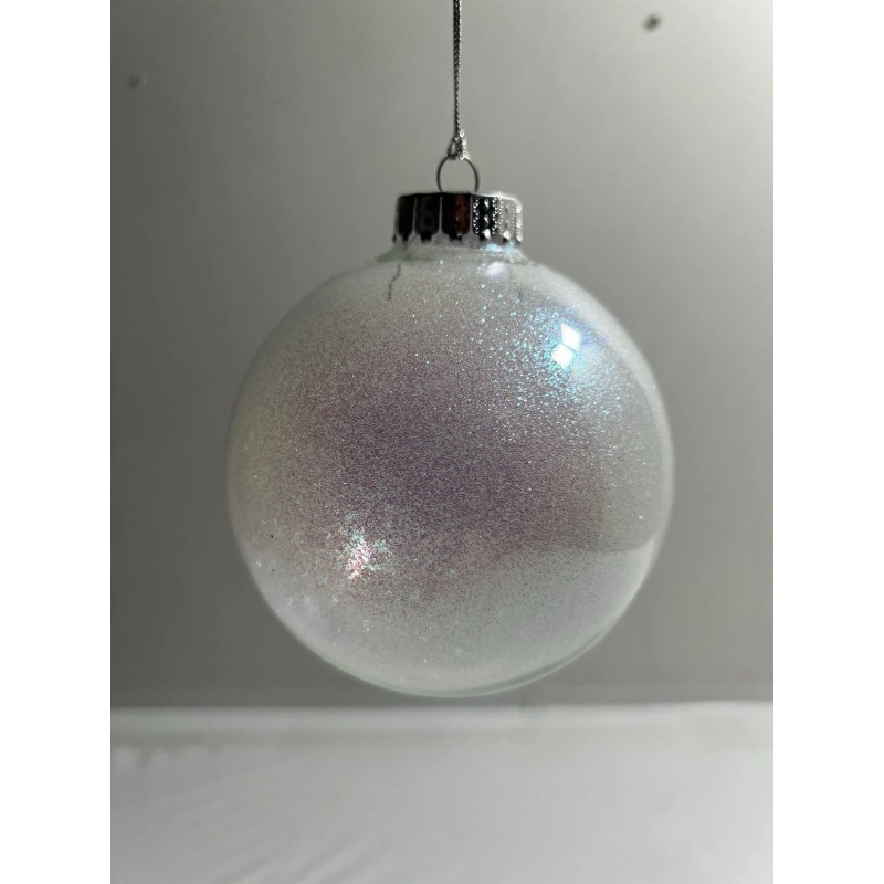 Unbranded VTG Christmas Ornament - clear Ball With blue purple green Glitter 3 1/2” New.