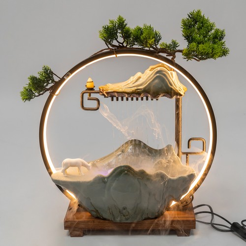Pressure Reliever: The crisp flowing water, the mellow light passing through the mysterious mist, the fresh mist, the lifelike plants, the backflow incense, and the retro wooden base can take away your fatigue, release your negative emotions, and allow you to enjoy your tranquility and meditation time as much as possible, as if you are in a landscape painting scene.