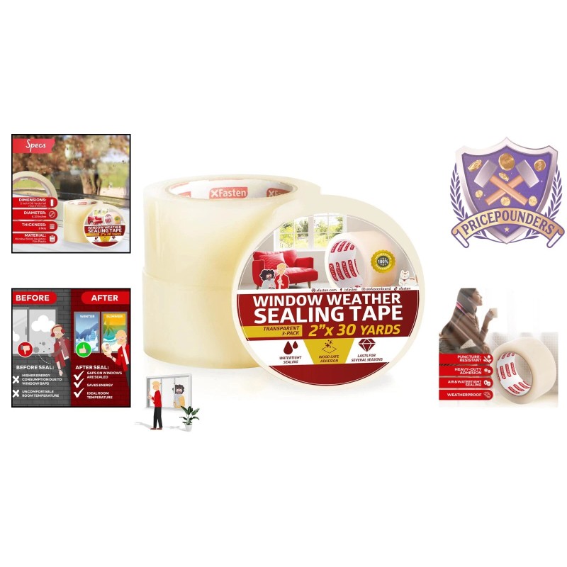 Weather Stripping Tape Clear 2"x30yds 3-Pack No Residue Insulation for Windows