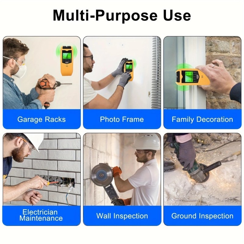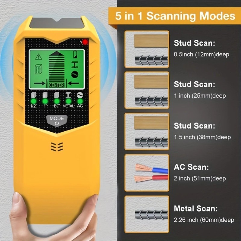 Product Introduction: This professional stud finder detects metal, wood, and live wires behind drywall and concrete, ideal for electricians and DIYers. No external power needed—simply turn it on and scan, with an LCD display showing results and depth. Ergonomic design fits comfortably in hand, making it easy to use for extended projects. Core Features: Multi-mode detection identifies wood studs, metal pipes, and live wires, reducing the risk of accidents during drilling. LCD display with depth gauge provides clear readings, showing how far behind the wall the object is located. Warning indicator alerts users to live wires, adding a critical safety layer missing in basic stud finders. Works on drywall and concrete, making it versatile for home renovations, office repairs, or construction projects. Product Advantages: More reliable than basic sensors, it accurately distinguishes between wood, metal, and live wires—avoiding costly mistakes. No batteries or power cords required, offering convenience in areas without outlets or during power outages. Ergonomic design reduces hand fatigue, making it better for long projects than bulky or poorly shaped detectors. Combines multiple functions in one tool, eliminating the need for separate metal detectors or wire finders. Ideal Uses: Essential for DIYers hanging shelves, TVs, or artwork, ensuring secure attachment to studs. Perfect for electricians locating wires before drilling, preventing electrical hazards. Useful for contractors working on drywall or concrete, needing to map hidden structures quickly. Why Choose This: It solves the frustration of hidden obstacles, making wall projects safer and more efficient. With its multi-detection capabilities and no-power design, it outperforms single-function tools in versatility and convenience. For anyone needing to work safely behind walls, this stud finder is a must-have for accurate, reliable detection. |