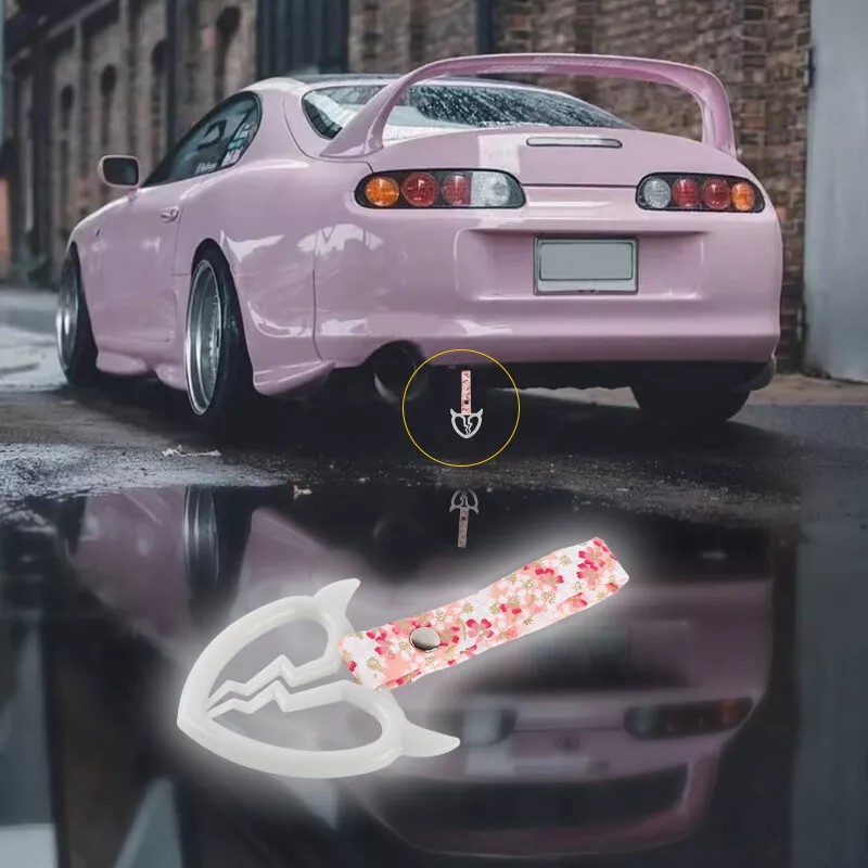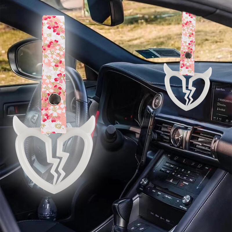 White Devil Broken Heart JDM Ring Subway Car Handle Strap -Pink Flowers Nylon X1