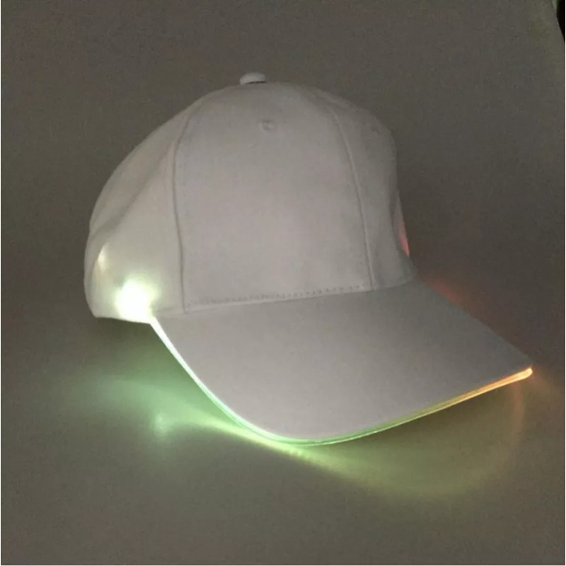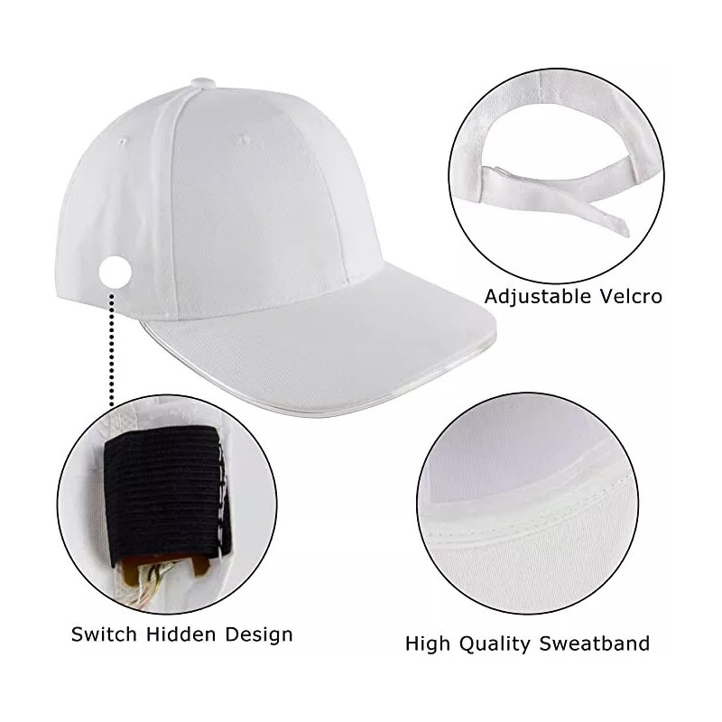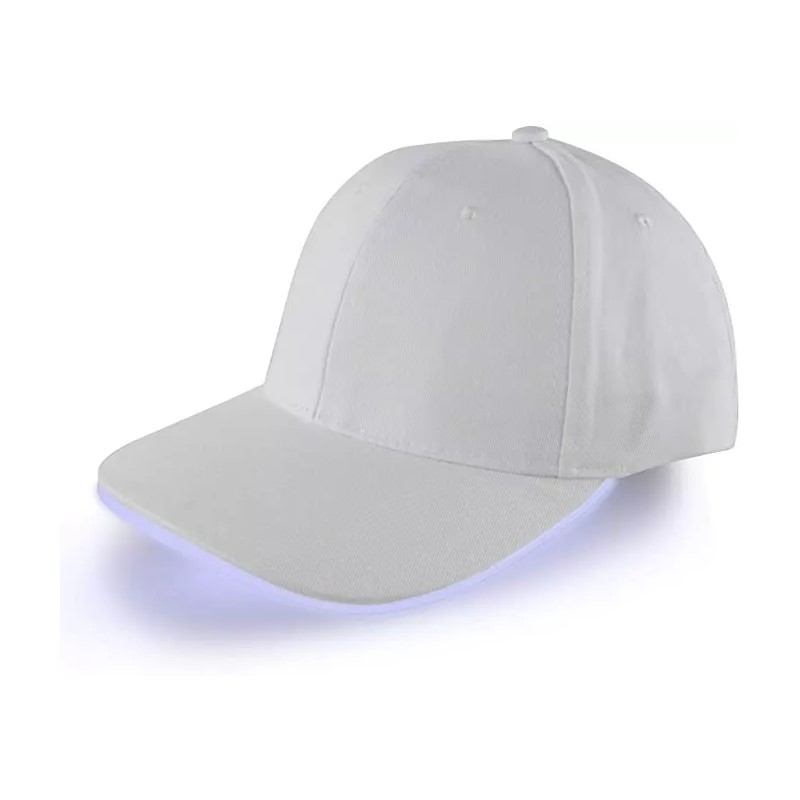 White LED Light White Baseball Cap Hat Glow Brim Night Party Adjustable -Running