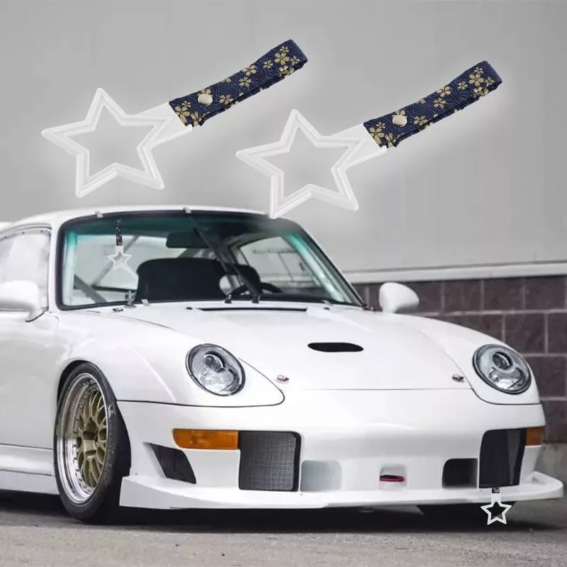 White STAR JDM Ring Tsurikawa Train Bus Car Handle Strap -Blue Flowers Nylon X1