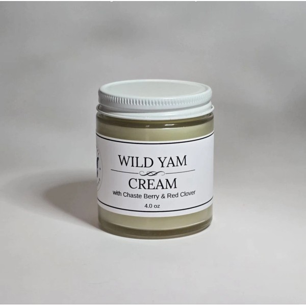 Made with an infusion of wild yam root, chaste berry, and red clover, Wild Yam Cream is designed to support the female hormonal system throughout the monthly cycle and during perimenopause and menopause.  Wild Yam Root contains diosgenin, a natural compound that helps to balance estrogen and progesterone naturally and may help over time to calm menopausal symptoms of hot flashes, night sweats, and mood swings.  It may also help to ease symptoms of bloating, cramps, and irritability associated with PMS.
