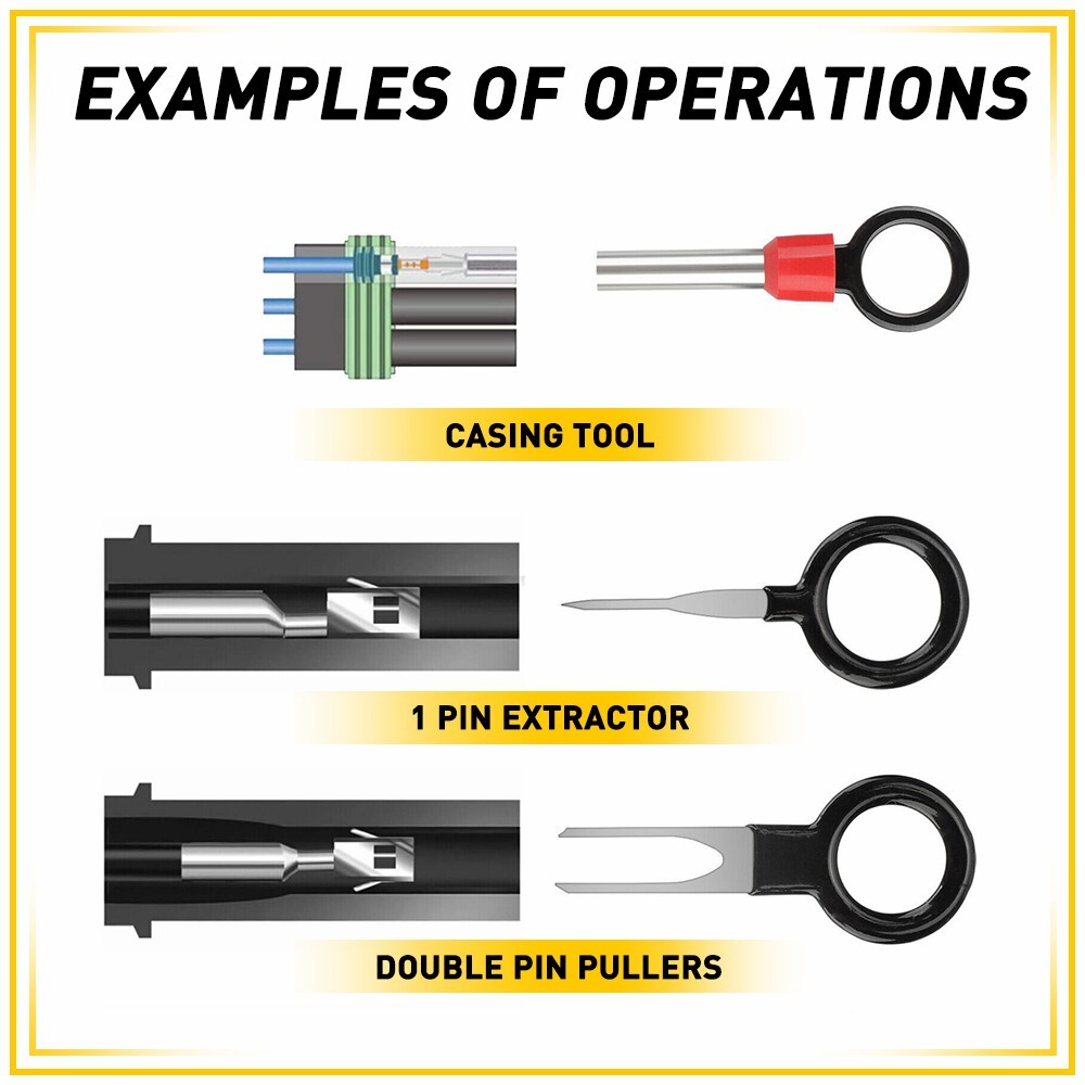 Ideal for various connector terminals in automobiles, motorcycles, and electronic vehicles, this terminal ejector kit is versatile and reliable.