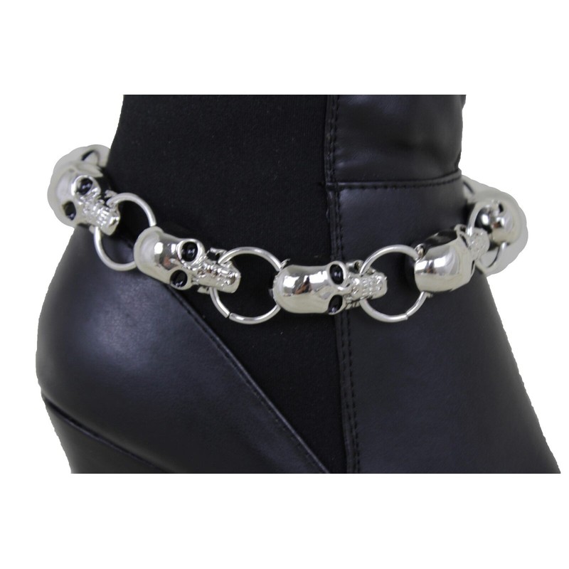 Unbranded Women Silver Metal Chain Boot Bracelet Bling Shoe Anklet Skull Char...