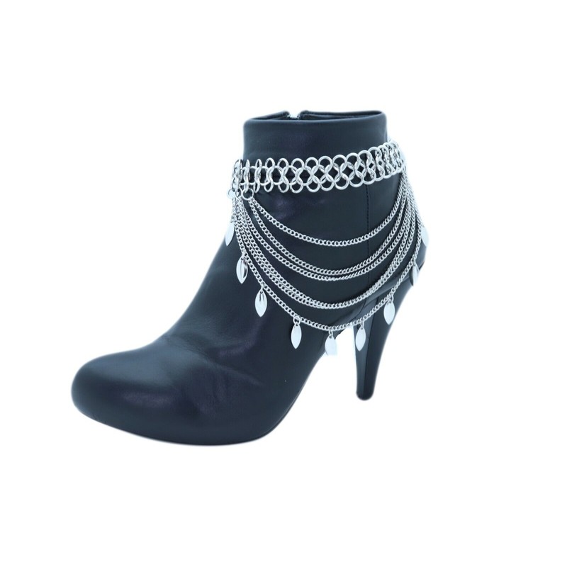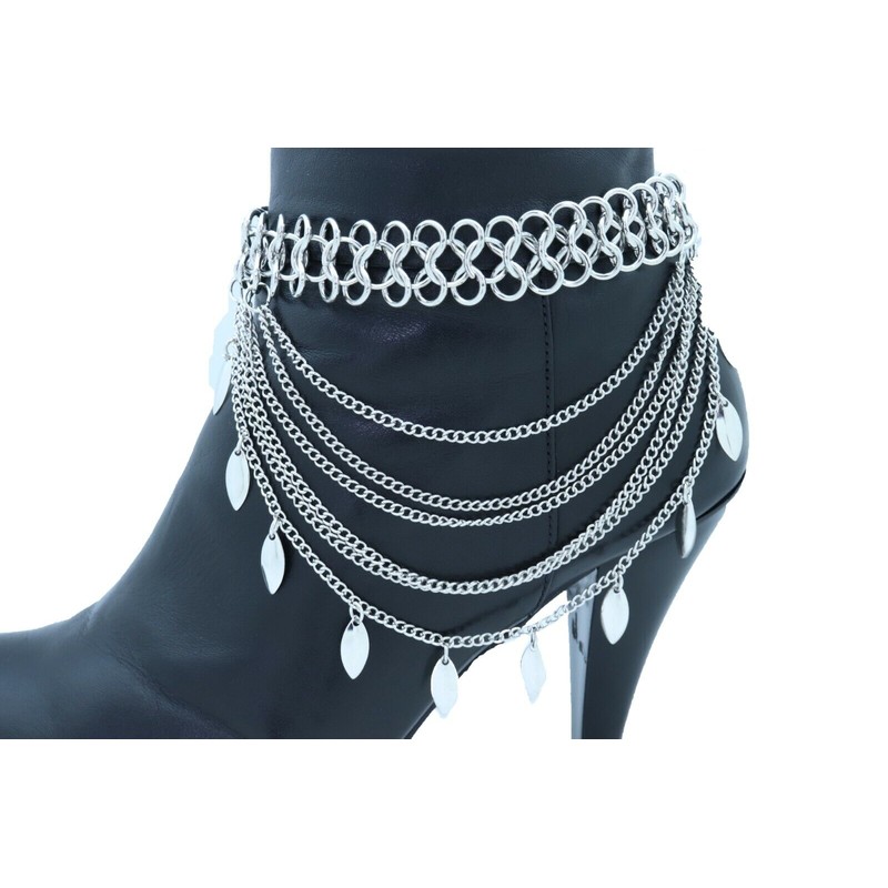 Unbranded Women Silver Metal Chain Boot Bracelet Cool Anklet Shoe Leaf Charms Bling Look