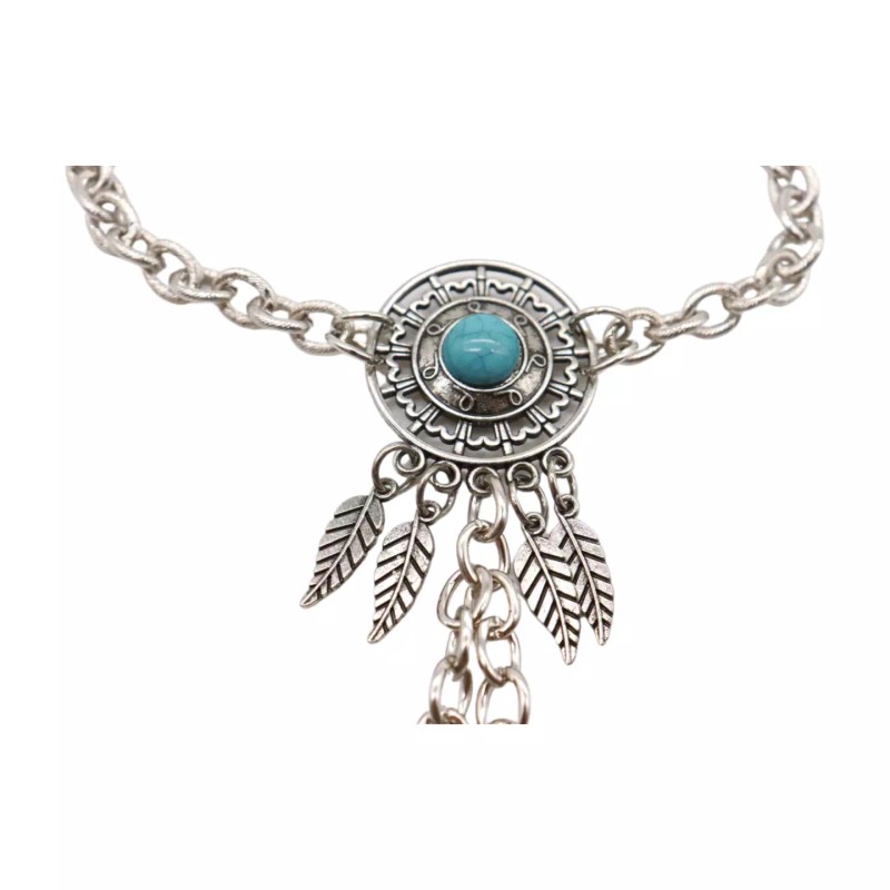 Unbranded Women Silver Metal Hand Chain Bling Bracelet Connected Ring Turquoise Blue Beads